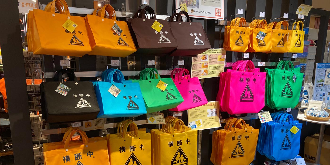 小学生などが使用する「横断バッグ」!実は静岡県オンリーだったのはご存知だったでしょうか?当店では横断バッグをモチーフにしたランチバッグやお守り入れ等さまざまなグッズを販売しております!
