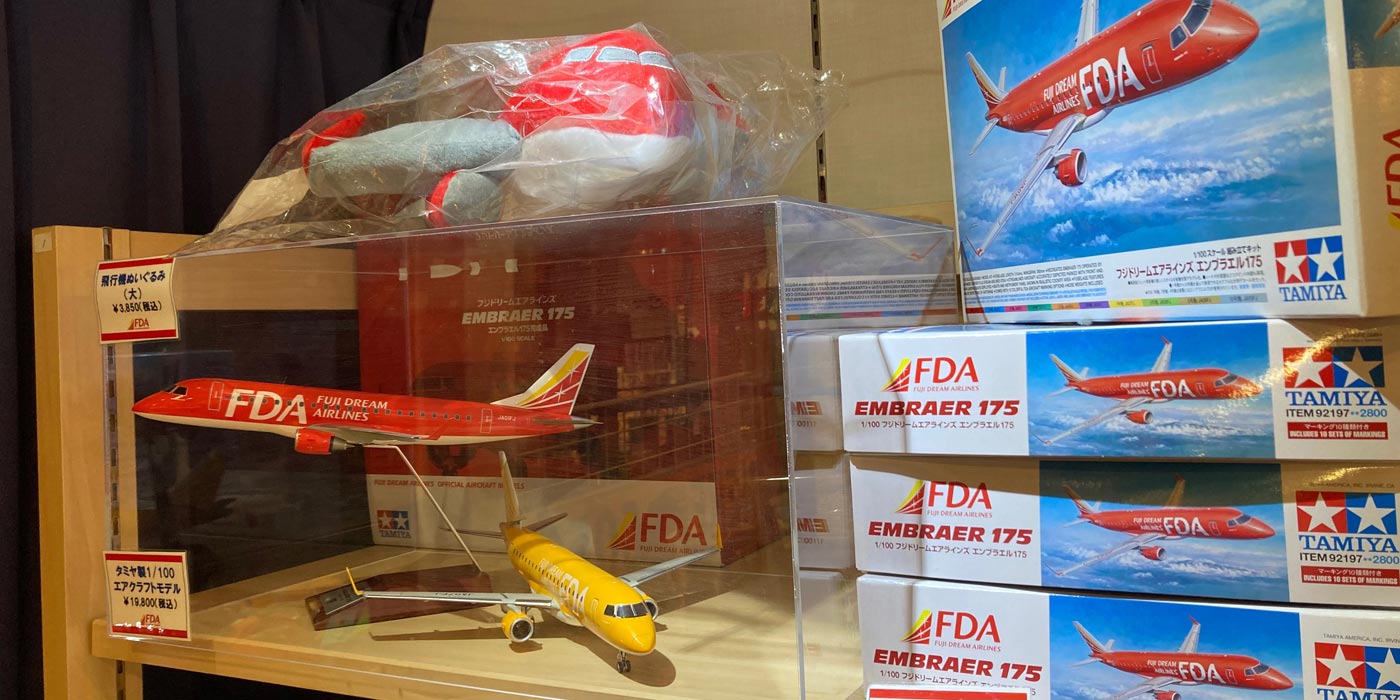 静岡空港、名古屋小牧空港、福岡空港、信州まつもと空港の4つの空港を拠点に国内16都市へ就航しているFDA(フジドリームエアラインズ)がグッズになりました!1/300サイズのミニ・モデルやぬいぐるみ、LEDライトキーホルダーなどの雑貨を豊富に取り揃えております!
